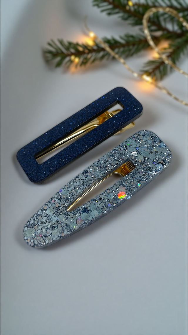 1. Deux barrettes assorties (pinces crocodiles, environ 6 cm) qui tiennent parfaitement dans les cheveux